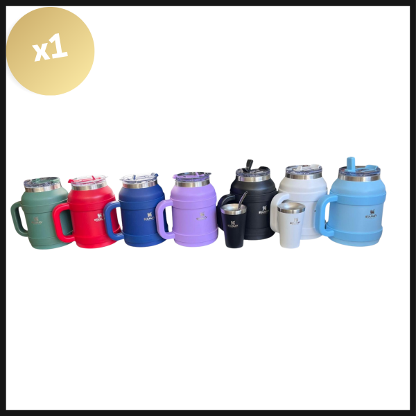Este galón térmico de 1.5 litros es la opción ideal para quienes buscan máxima practicidad y capacidad en una sola pieza. Incluye doble pico vertedor (uno tipo bombilla y otro tipo pico clásico), tapa a rosca y mate a juego con bombilla metálica, lo que lo convierte en un set perfecto para disfrutar del mate en cualquier momento y lugar. Fabricado en acero inoxidable con doble pared, conserva la temperatura por horas y es ultra resistente. Su manija lateral facilita el transporte, y el diseño moderno en colores vibrantes le da un toque único.