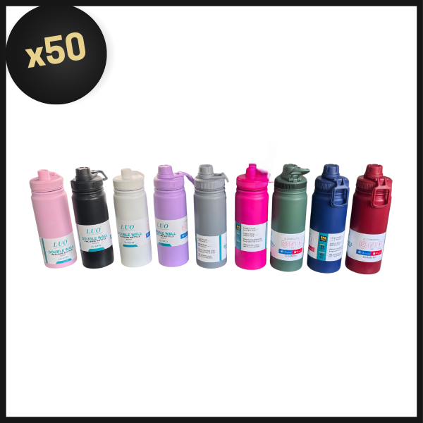 Venta mayorista exclusiva. Botella térmica deportiva 600 ml con doble capa de acero y pico con sorbete.