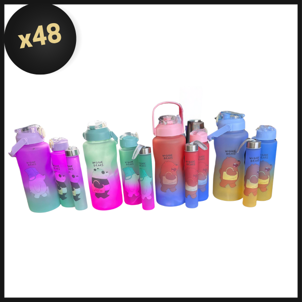 Práctico combo de hidratación que incluye 3 botellas de plástico reutilizables (una dentro de la otra), ideales para llevar al gimnasio, oficina o actividades al aire libre.