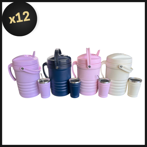 Incluye un galón térmico con tapa a rosca y manija reforzada + mate de acero inoxidable y bombilla, todo en un mismo diseño funcional.