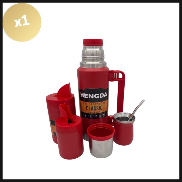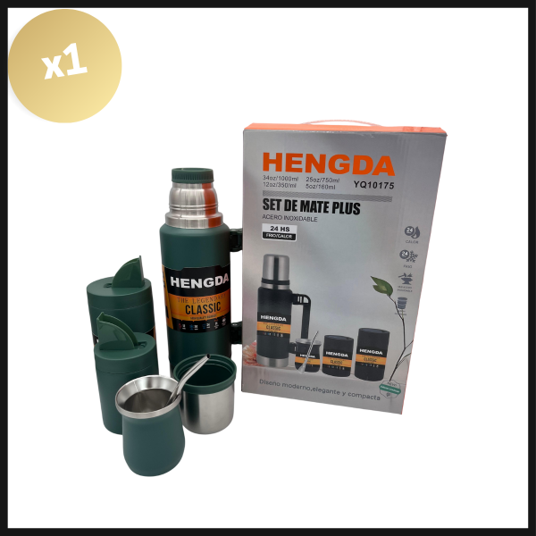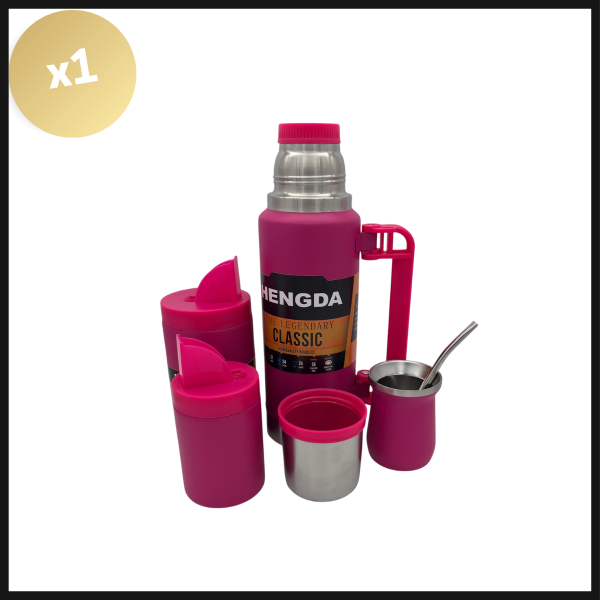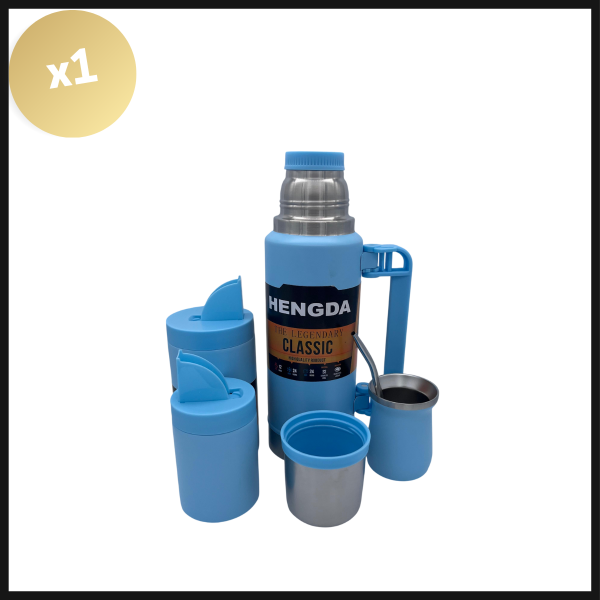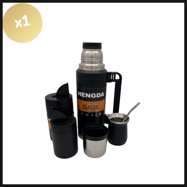 Incluye termo de acero inoxidable con capacidad de 1000ml, yerbera, azucarera y mate. Todo presentado en una caja elegante. Ideal para regalar o disfrutar en cualquier ocasión.
