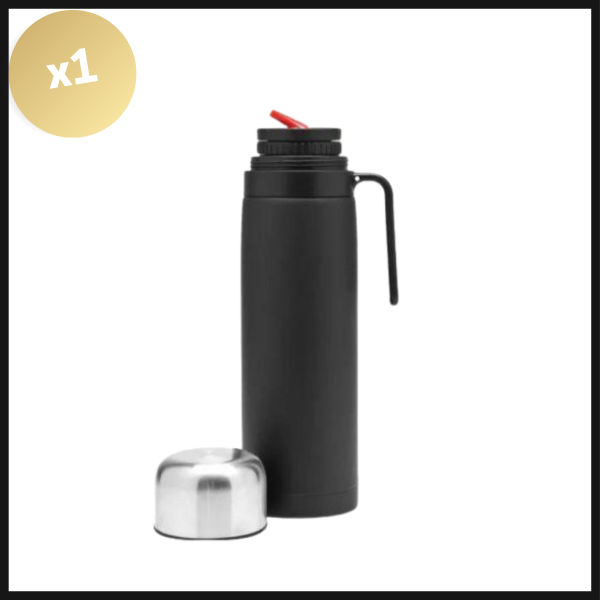 El Termo Uruguayo de 1 litro es un clásico que no puede faltar. Diseñado con pico cebador a rosca y manija lateral, es práctico, resistente y perfecto para el uso diario.