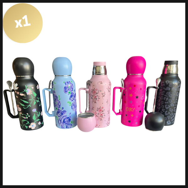 Este termo de 1300 ml con tapa bolita y diseño estampado es perfecto para quienes buscan estilo y funcionalidad. Fabricado en acero inoxidable, conserva la temperatura de tus bebidas por horas. Incluye mate a juego y un cómodo asa lateral metálica, ideal para transportar fácilmente. Su tapa tipo tapamate permite cebar con practicidad y sin derrames.